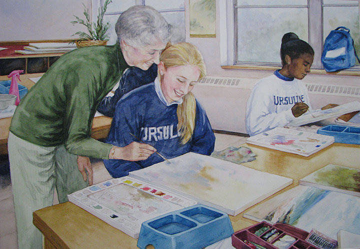 Sister Anne Therese Dillen, an Ursuline nun, has been an exhibiting painter and teacher on high school, college and graduate levels for over forty years. A graduate of the College of New Rochelle as an art major on scholarship, she went on to get her Master of Fine Arts degree at Catholic University and has further studied watercolor with Robert Calrow, AWS, Charles Kinghan, NA, and William Maxwell.